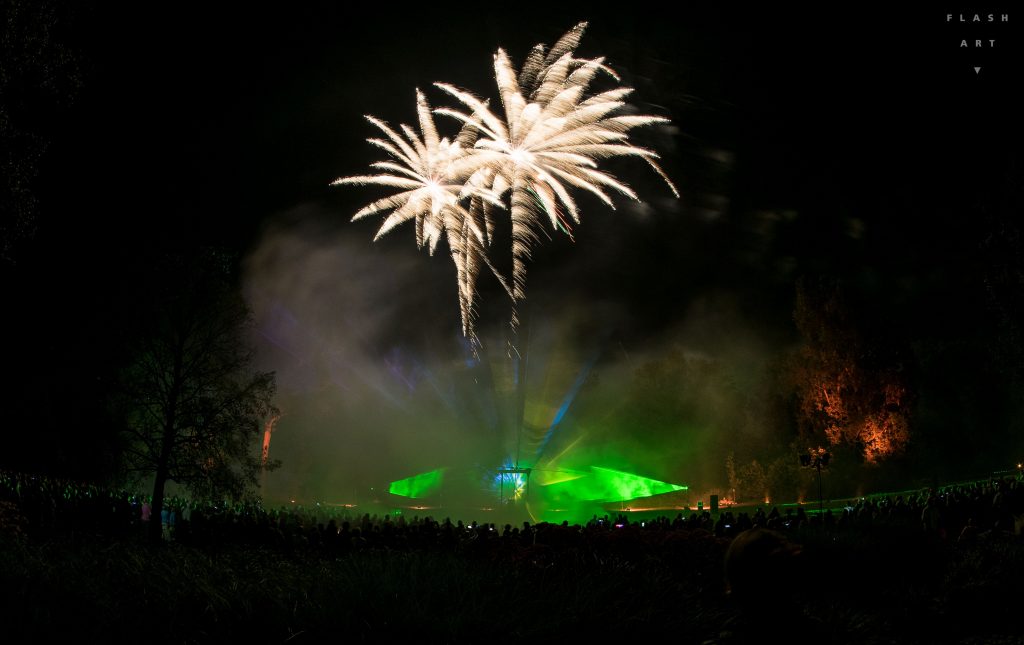 Auf dem ehemaligen Landesgartenschaugelände in den Emsauen findet jedes Jahr das Festival „Feuer und Flamme“ statt. Das diesjährige Motto lautete „Big Bang – eine Reise durch das Universum“ und das haben wir natürlich sowohl musikalisch als auch in der Auswahl der Effekte aufgegriffen. Die Gäste erlebten hautnah einen Flug durch ferne Galaxien mit schillernden Farben aus Laserbeams und Pyroeffekten. Auf einer Breite von rund 250m haben wir Feuerwerk und Laser inszeniert. Willkommen im Weltall!